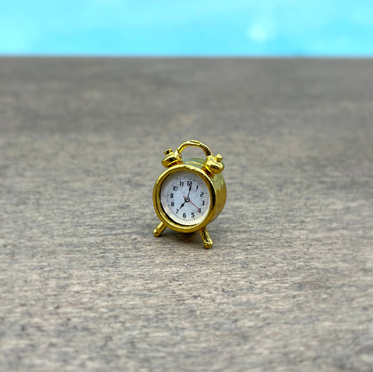 Miniature Gold Alarm Clock. Dollhouse Accessory. 1:12 Scale