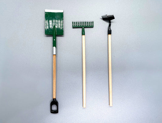 Miniature Rake Spade Set. Choose Red Or Green. Garden Dollhouse Accessories 1:12 Scale