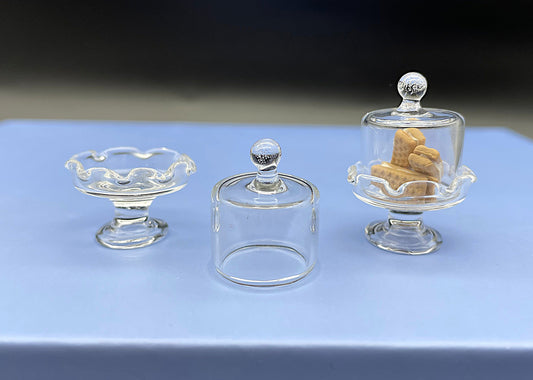 Miniature Glass Cake Stand. For Mini Cupcakes Dessert Cookies. Dollhouse Kitchen Cooking Accessories. 1:12 / 1:18 Scale