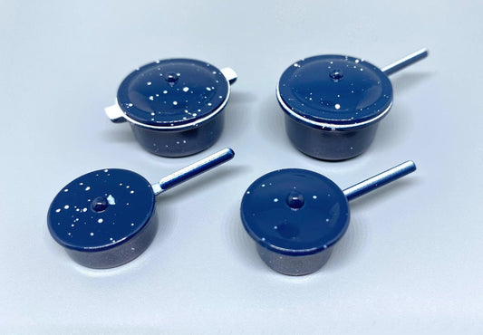 Miniature Spotted Pots. Set Of Four. Red Or Blue. Dollhouse Accessories 1:12 Scale