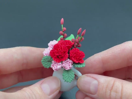 Miniature Roses in Flower Vase. Dollhouse Accessory. Scale 1:12