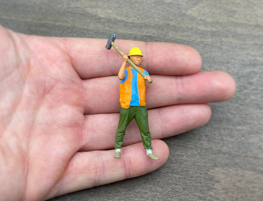 Construction Worker with Sledgehammer. Miniature Human Figure. 1:32 Scale