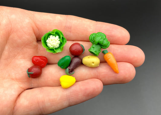 Miniature Vegetables. Peppers Mushroom Cucumber Carrot Potato Tomato Eggplant Broccoli Cauliflower. Kitchen Food. 1:12 1/6 Scale