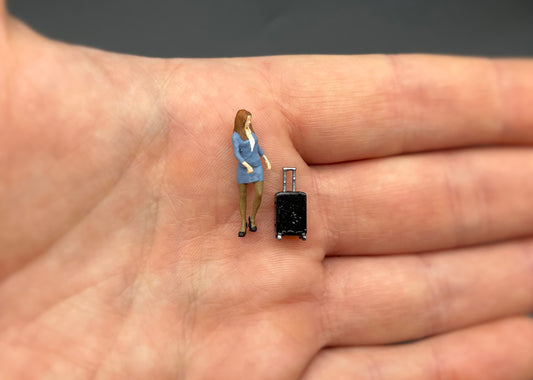 Flight Attendant and Suitcases. Miniature Human Figure. 1:64 Scale