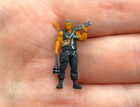 Arnold Schwarzenegger with Bazooka. Commando Movie Figure. Miniature 1:64 Scale