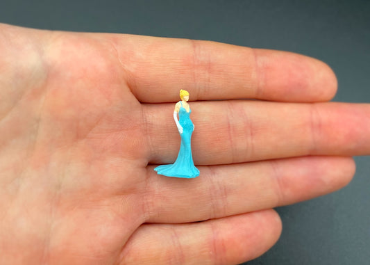 Miniature Princess in Blue Ball Room Dress. 1:64 Scale Human Figure
