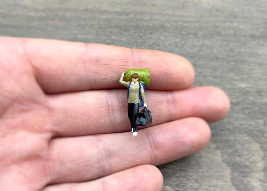 Boy Carrying Luggage. Backpacker / Traveller. Miniature Human Figure. 1:64 Scale
