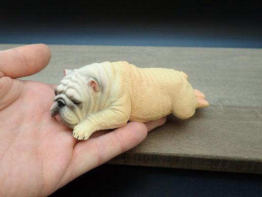 Miniature English Bulldog Models. Sleeping and Playing. 1:6 Scale Dog Miniatures