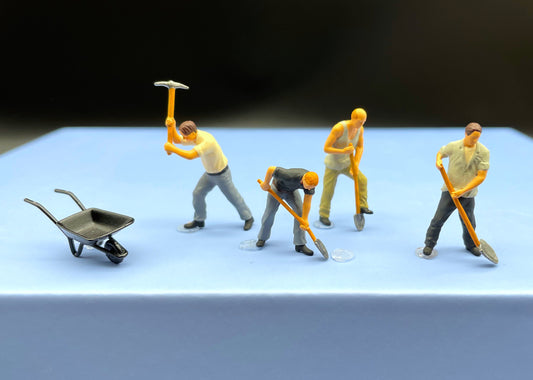 Construction Workers. Diggers / Miners. 1:64 or 1/87 Scale. Miniature Human Figures