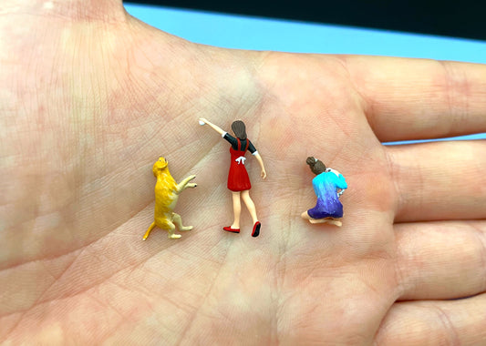 Miniature Animal Lover / Pet Owner. Woman and Cat / Dog. 1:64 Scale Figures