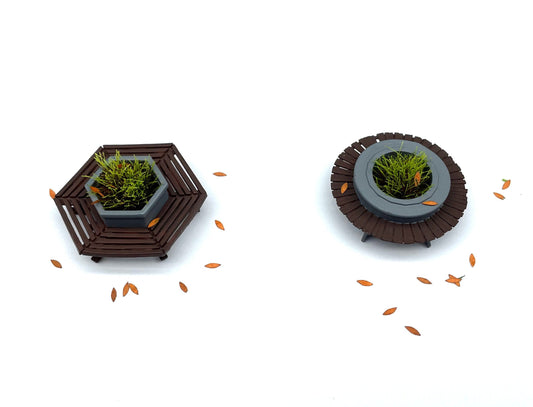 Round and Hexagon Park Bench, Miniature Outdoor Furniture Accessories. 1:64 1/87 Scale