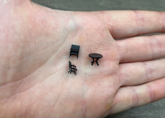 Miniature Furniture. Tables, Chairs, Bench. 1:87 Scale