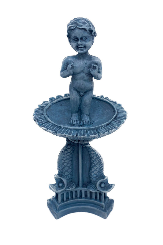 1:12 Scale Miniature Hand Painted Cherub Bird Bath. Handmade Dollhouse Model