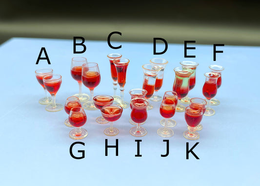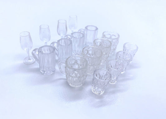 1:12 Scale Miniature Drinking Glasses (16 Pieces). Handmade Dollhouse Kitchen Accessories