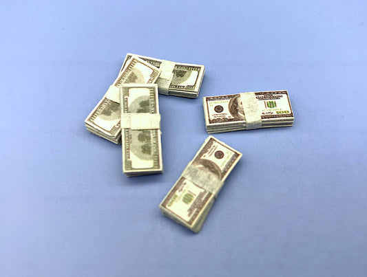 1:12 Scale Miniature 5 x Stacks of Money 100 Dollars USD. Dollhouse Handmade