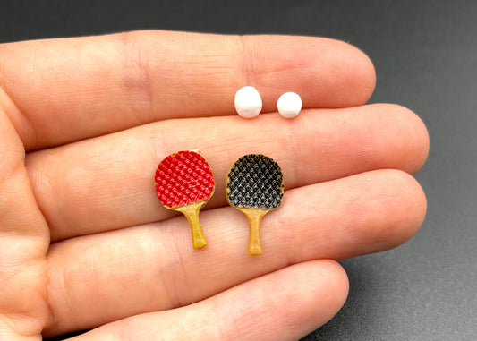 2 Ping Pong Racket and 2 Balls. Miniature Dollhouse Accessories. Game / Sports. 1:12 Scale