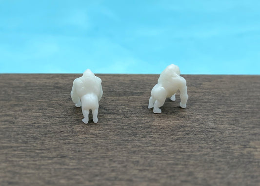 2 Unpainted Silverback Gorilla Figures. 1:100 Scale Miniature Animal. Ready to Paint