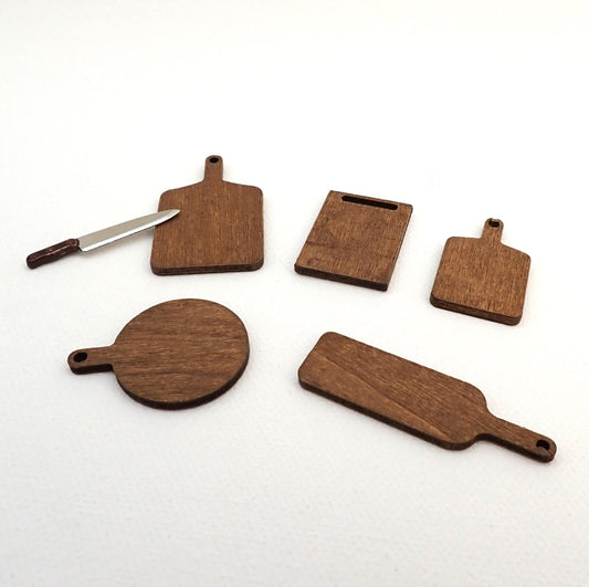 5 Wooden Chopping Boards. 1:12 Scale. Miniature Dollhouse Accessories