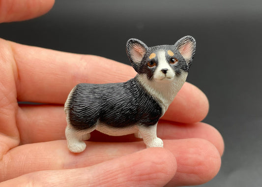Miniature 1:12 Scale Corgis. Black and White Corgi Dog. Puppy Model