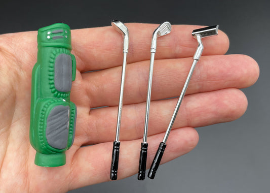Miniature Golf Bag with Golf Clubs. Blue, Red or Green. 1:12 Scale. Dollhouse Garden Accessories