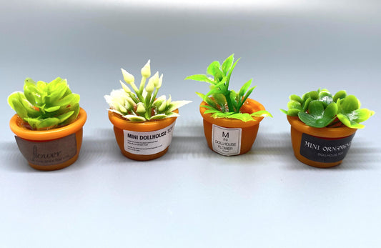 Miniature Plants in Ceramic Pots. Cute Green Flowers and Leaves. Dollhouse Accessories 1:12 Scale