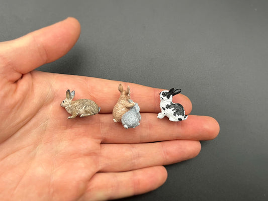 Miniature Bunny Rabbits. Hand-Painted. 1:12 Scale Miniature Figures