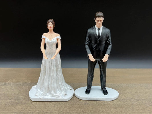 Bride and Groom Couple. Wedding Cake Topper. 4 inches / 10cm tall