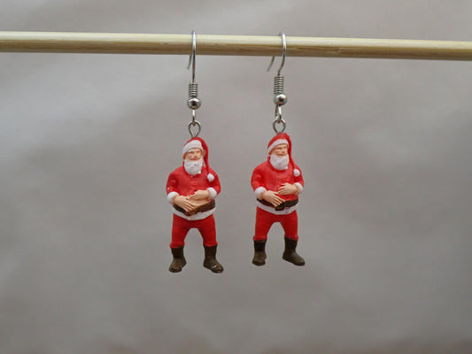 Jolly Santa Earrings. Hand-Painted. Christmas Holiday Jewelry Gift