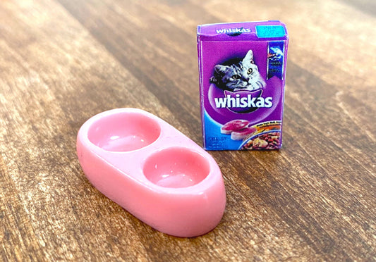 Miniature Dog or Cat Food and Bowl. Dollhouse Accessories. 1:12 Scale