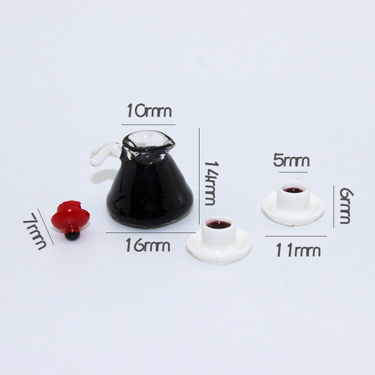 Miniature Coffee Pot and Cups. Dollhouse Kitchen Accessory. 1:12 Scale