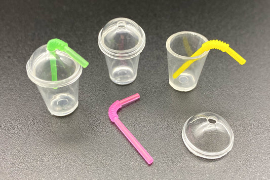 Miniature Iced Tea Plastic Cup, Lid, Straw. Dollhouse Accessories Kitchen Coffee 1:12 Scale