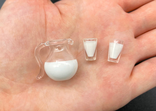 Miniature Milk or Juice set. Jug and Glasses. Kitchen Food Drink. Dollhouse Accessories 1:12 Scale