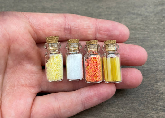 Miniature Jars Dry Food Set. Salt, Spaghetti, Corn Flour, Chili Flakes. Kitchen Food. Dollhouse Accessories. 1:12 Scale