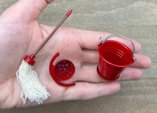 Miniature Mop and Bucket / Dustpan and Brush. Dollhouse Accessories. 1:12 Scale