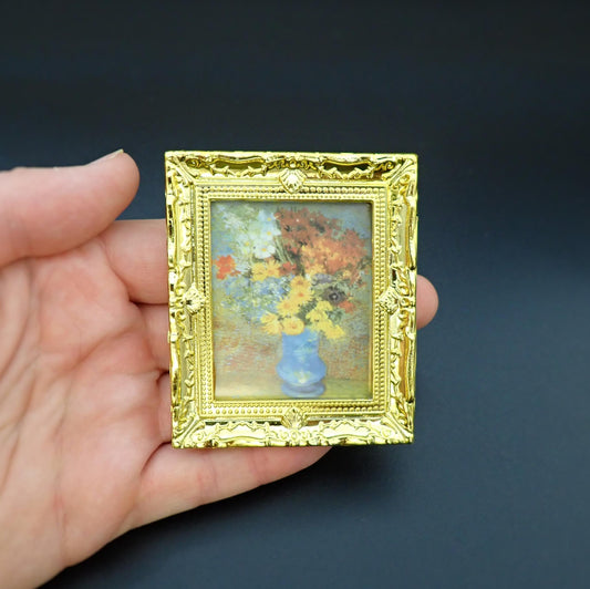 Miniature Paintings in Ornate Gold Frames. 1:12 Scale Miniature Accessories. 'Sunflowers'