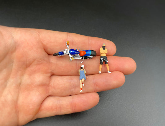 Cruiser Motorbikes with Human Figures. Girl and Guy. Miniature. 1:64 Scale