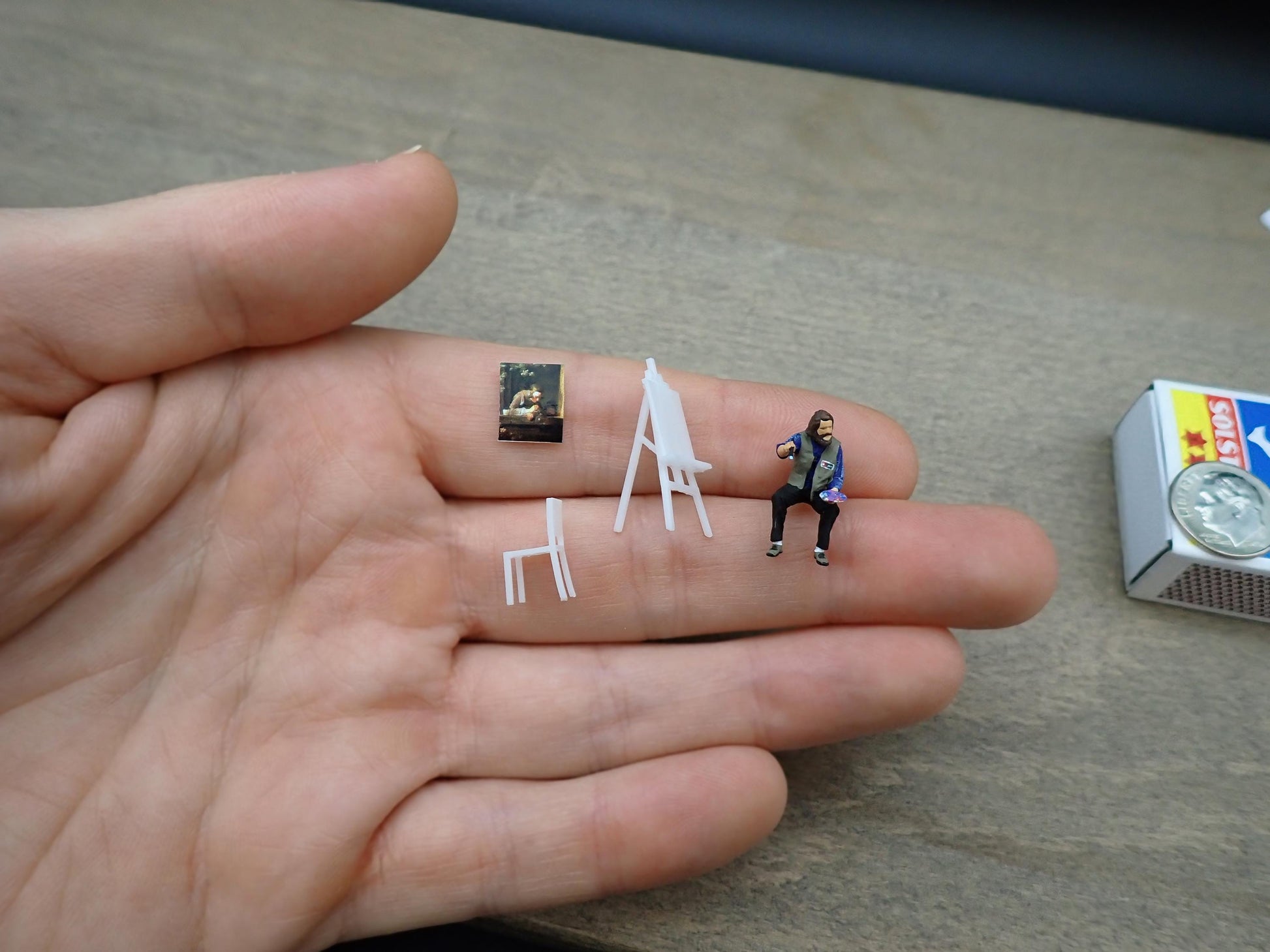 Miniature Artists Painting on Easel. 1:64 Scale. 1 Inch Tall.