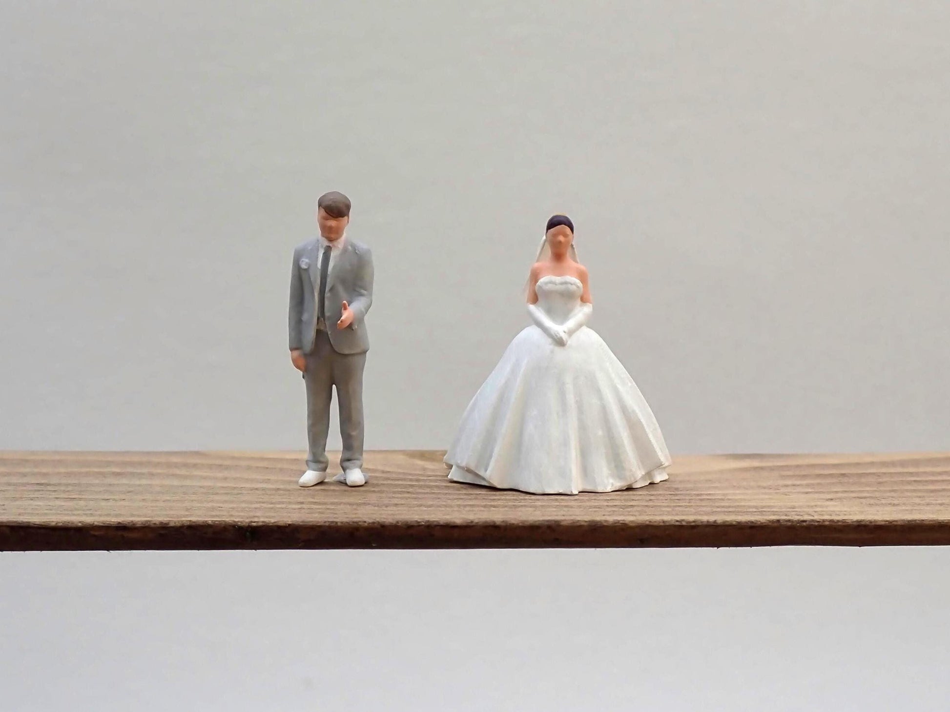Miniature Bride and Groom Figures. Hand-Painted. 1:64 Scale