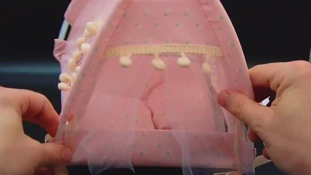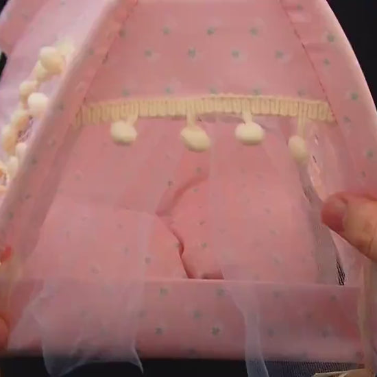 It comes with a soft cushion that you can place inside (or remove entirely). The ties on the bottom allow you to collapse the tent quickly and easily
