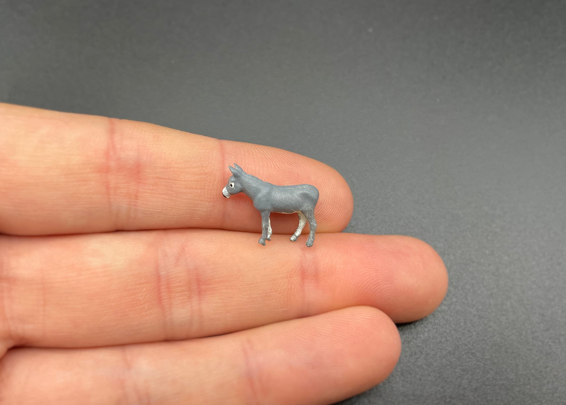 Donkey: 0.57 inches (1.45 cm) tall x 0.71 inches (1.8 cm) long
