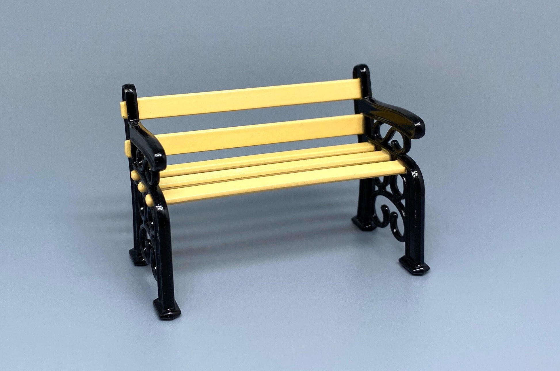 Miniature Lamp Post & Black Bench, Metal and Wood. Dollhouse Accessory. 1:24 Scale